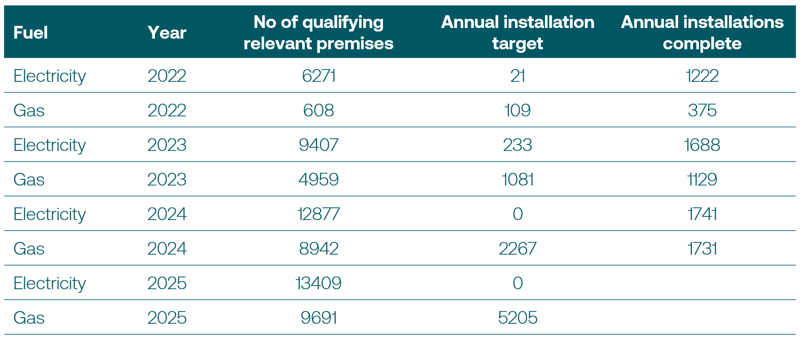 We are required under supplier license to publish our smart meter installation targets and actual performance to date: